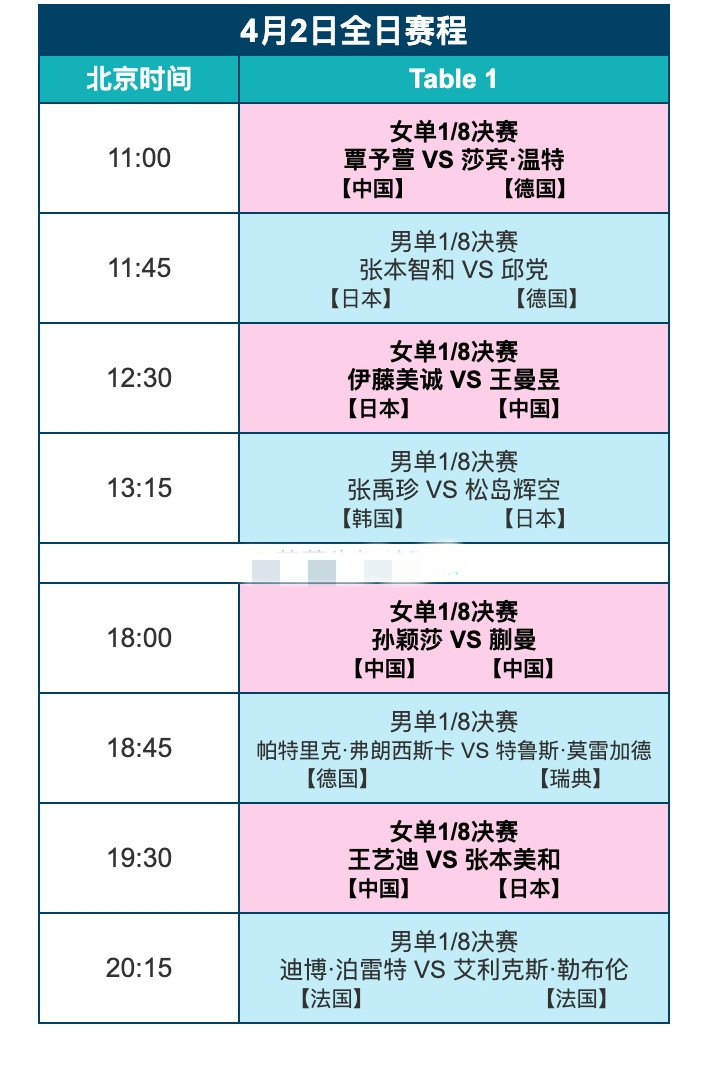 首先在上午11点国乒覃予萱对阵莎宾·温特。覃予萱小组赛爆冷击败早田希娜,状态正热,她打法以近台快攻为主,反手拧拉旋转强,正手爆发力足。温特反手使用防弧胶皮,这种胶皮几乎不吃旋转,回球弧线低平飘忽,节奏怪异,专门克制发力进攻型选手。她近期连续击败朱雨玲、王艺迪等高手,状态同样出色。本场较量是青春冲击力对阵经验与怪异打法。覃予萱需快速适应防弧胶的旋转变化,避免陷入温特的节奏陷阱;温特则要利用胶皮特性控制比赛,伺机用正手爆冲得分。从打法相克和近期战绩看,经验丰富且状态火热的温特赢面稍大,但覃予萱的冲击力也可能带来变数。