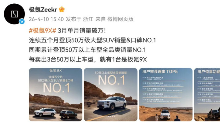 上述的第一季度销量统计里,有一个明显的反差在于,目前是以30万元的价格为明显的分水岭。30万元以上的车型,依然还相对好卖,但30万元以内的车型,滑落比教快。吉利银河M9在2025年第四季度销量为3.12万辆,能够月均破万,乐道L90为2.18万辆,能够月均破7000台,智己LS9倒是不多,只有0.75万辆,和2026年第一季度(因为有春节影响)是基本接近的。