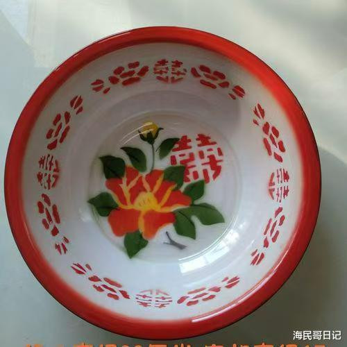 3. 搪瓷脸盆/搪瓷缸:洗脸、盛饭、装咸菜都用它,带“囍”字的是嫁妆热门款