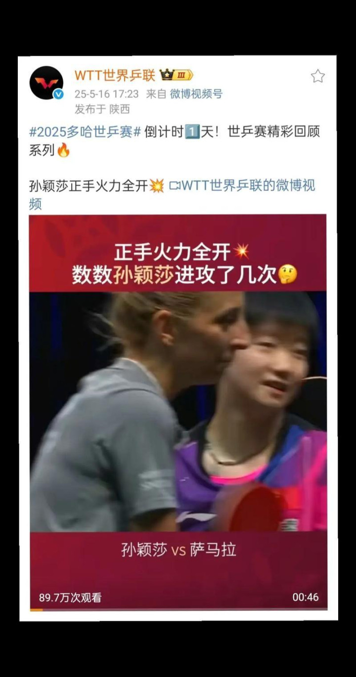 要知道自从孙颖莎在东京一战成名后,大家对于她的期望一直都很高。