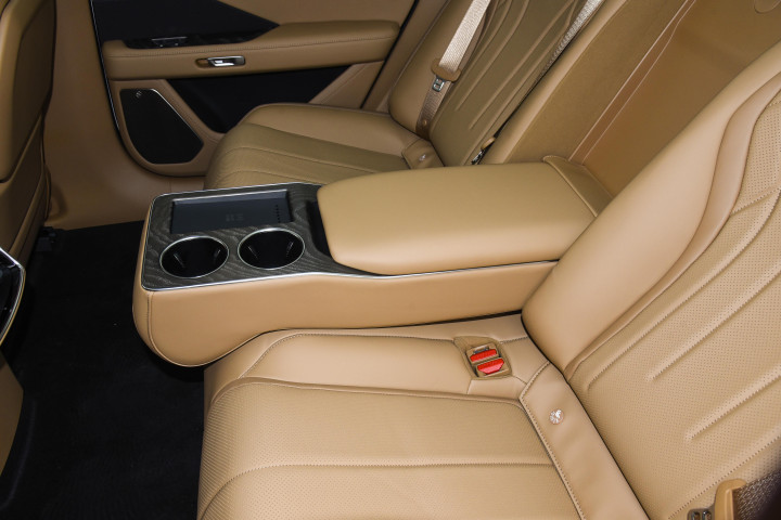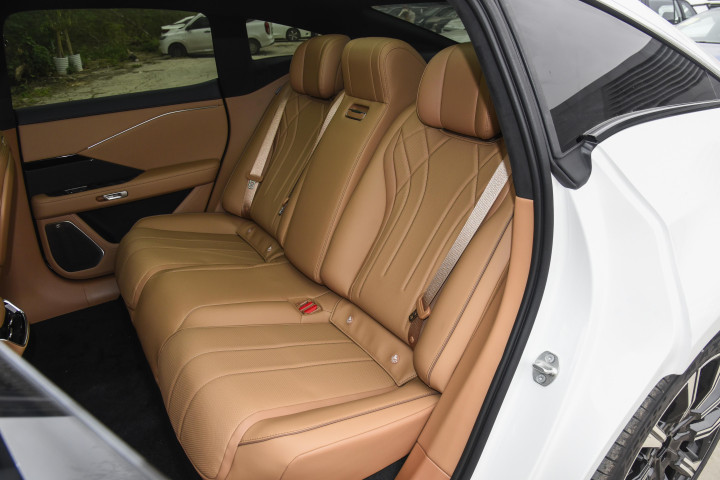 配置层面,前排座椅配备通风加热记忆按摩、前后排双层夹胶隔音玻璃、分段式电动遮阳帘天幕、10安全气囊等。还带有副驾零重力座椅、后排座椅也带加热通风按摩功能、23扬声器雅马哈7.1.4全景音响、27英寸全景HUD、Nappa真皮全套内饰、智能香氛系统,还支持选装车载冰箱。得益于3020mm的轴距,后排乘客的腿部空间比较宽裕。后备箱容积处于中大型轿车的常规水平,后排座椅不支持放倒,容积装载能力有所限制。
